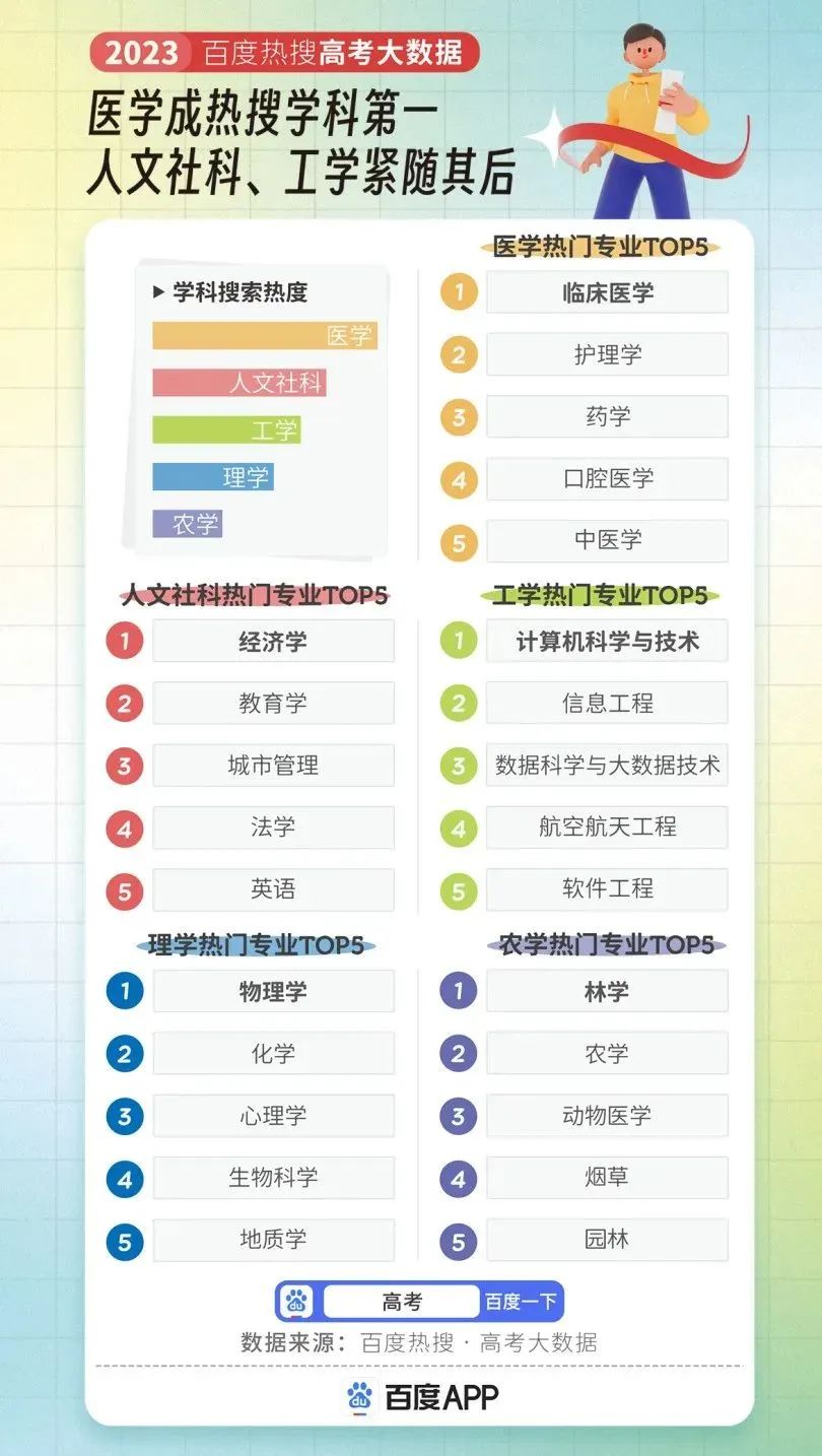 3、根据百度发布的《2023百度热搜高考大数据》数据获悉,在院校热门专业中,护理学专业报考人数持续上升,热度不减。